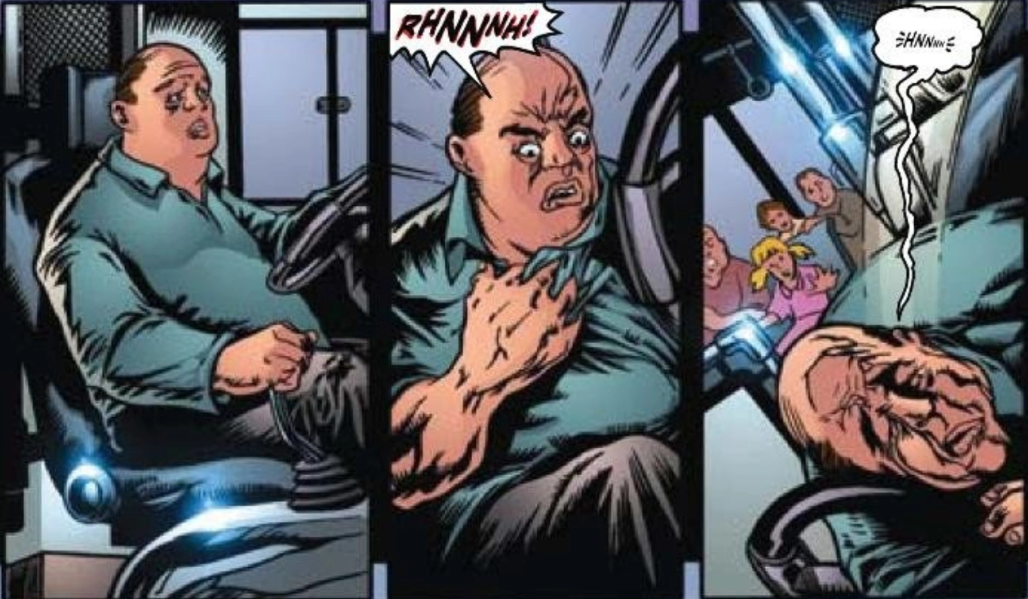 The Bus Driver is a character in the comic Final Destination: Sacrifice. He is a casualty of the Bus Terminal pileup. The bus driver suffers a heart attack, inadvertently causing the pileup to occur.