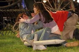 Wendy escapes the fireworks along with Kevin and Julie.