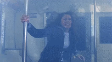 Julie and her sister Wendy trying to escape the train.