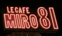 The Le Cáfe Miro 81 sign, also known as the 180 sign, was a sign located in Paris, France of a restaurant named Le Cáfe Miro 81 in the film Final Destination. It was part of a sign (originally the sign said "Le Cáfe Miro 81") that came loose once a chain of events started, beginning with a bus knocking it out of its sockets. When it swings down, it very clearly reads "18 o" and is heading right for Alex Browning. Just as it is about to hit him, Carter Horton knocks him out of the way and saves him. Carter tells Alex that he is next, but he responds by saying his death was just skipped. Carter begins to wonder who is next, only for the sign to appear out of nowhere and swing towards Carter instead, killing him off-screen.