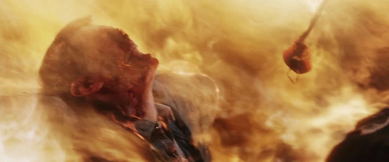- As the flames are burning the flesh off of Sam's face, the breathing masks, which can be seen blowing towards the back in the flames, are not melting, despite being made of plastic and/or rubber.