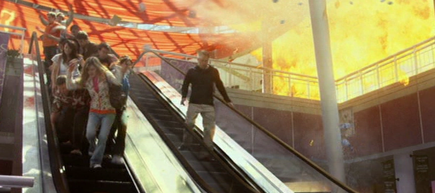In Nick's premonition, an explosion occurs in the mall.