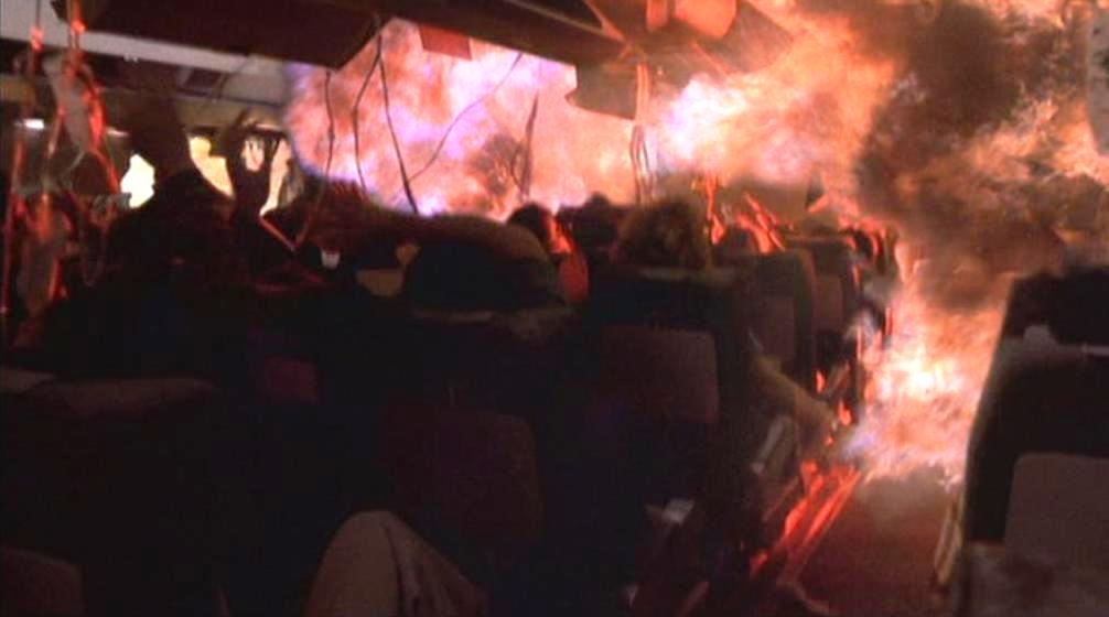 The plane then explodes in mid-air, and the shockwave from the explosion is so powerful that the glass windows in the terminal shatter. As the officers call for help, the other survivors look at Alex in horror and watch as the burning wreckage falls from the sky.